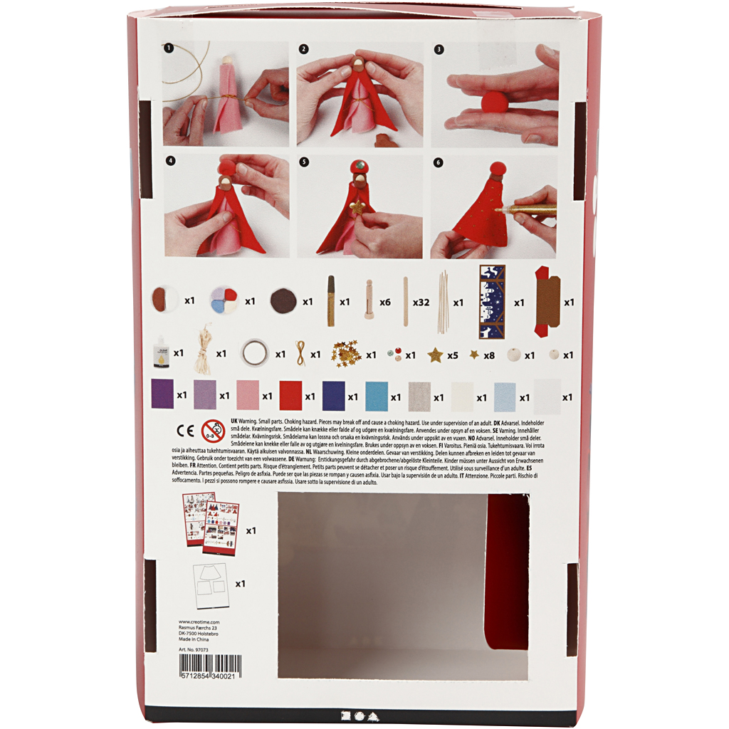 Material set with many different creative materials for modeled theme figures with Silk Clay. Take advantage of the accompanying box for an atmospheric crib game with eg. Joseph, Mary, the baby Jesus and the three wise men. Guidance included. Content: Silk Clay, felt, clothes clips with stopper, linen, bast, straw, icicles, rhinestones, moss rubber figures, palettes, string, glitter glue, glue, tape, background for the crib game and template sheets. A child is born, 1 set