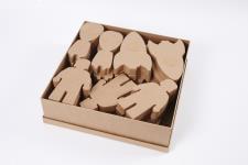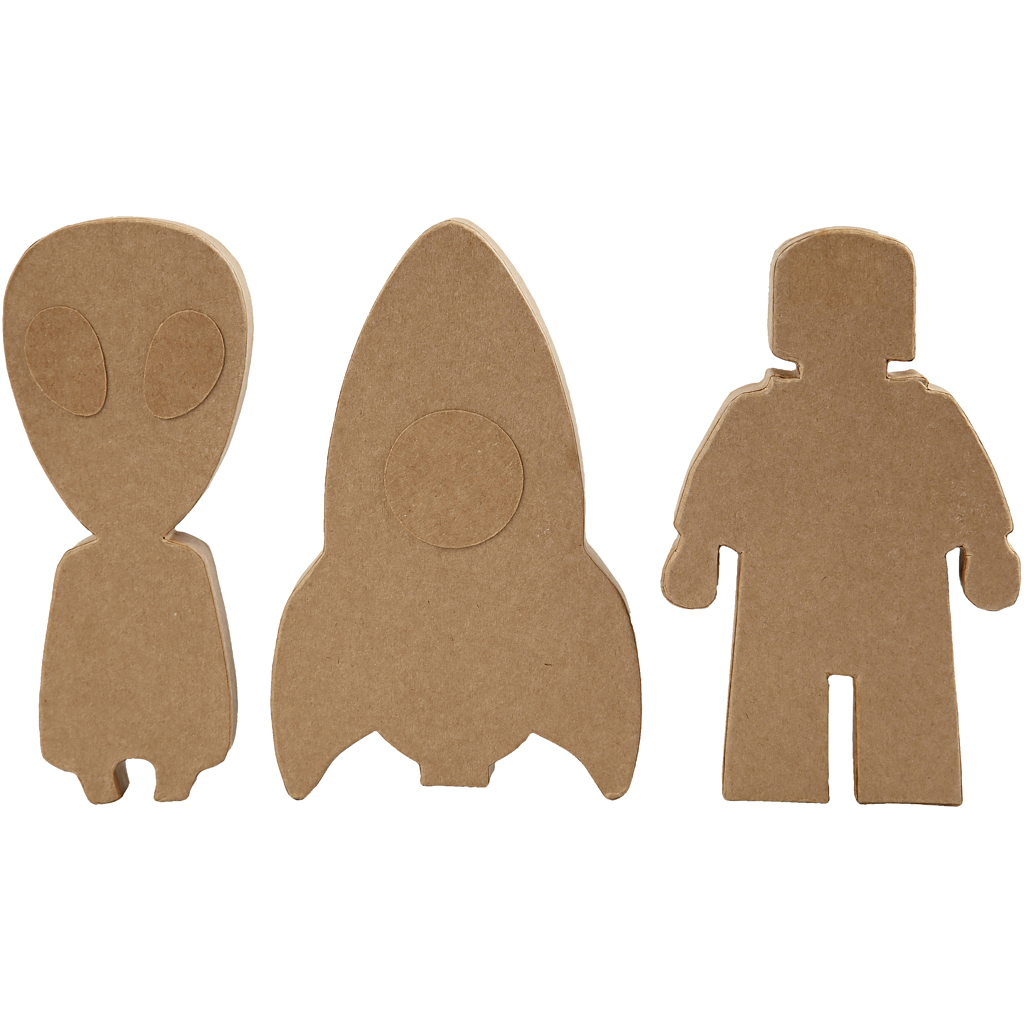 An assortment of different figures of brown papier-mâché. Pack with 3 different designs each of 9 pcs. Supplied in a display box size 37x37x11 cm. Aliens, H: 18 cm, thickness 25 mm, 3x9 pc/ 1 pack