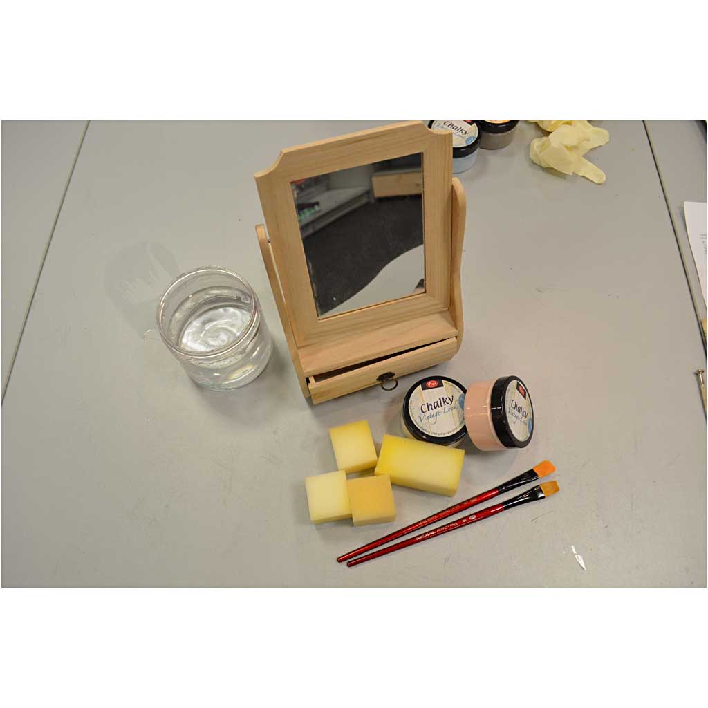 Water-based vintage-look paint with matt finish for wood, strong cardboard, glass, painted wood etc. After drying, grind the surface with sandpaper to achieve vintage look. Chalky vintage look, antique rose (402), 250 ml/ 1 tub