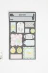 Sheets of self-adhesive labels in several sizes of heavy white paper printed with different designs in pastel colours. Can be used as a decoration for cards and for scrapbooking. Self-adhesive Tags, size 20-50 mm, 1 sheet