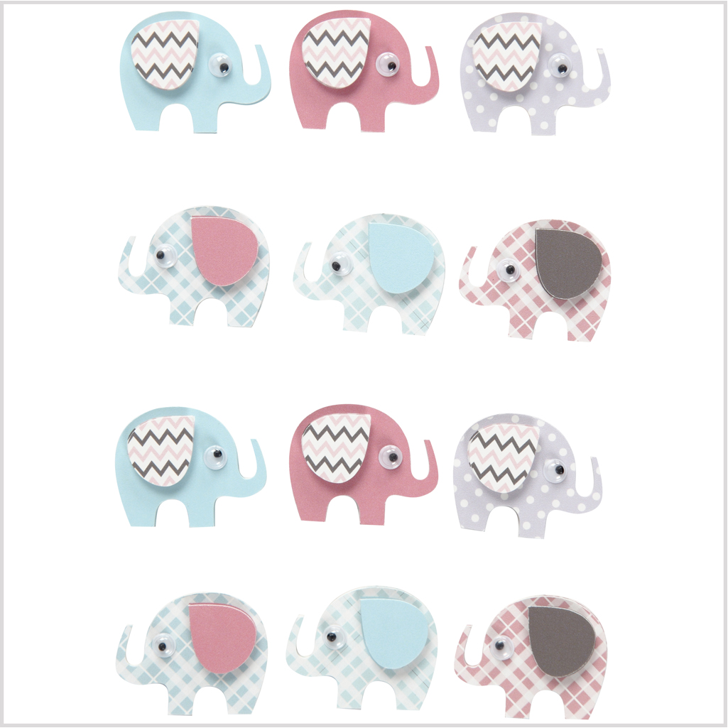 Detailed 3D sticker designs to use in multiple layers. Each is carved from thick paper with pads on the back. 3D Stickers, elephants, H: 25 mm, W: 31 mm, 12 pc/ 1 pack