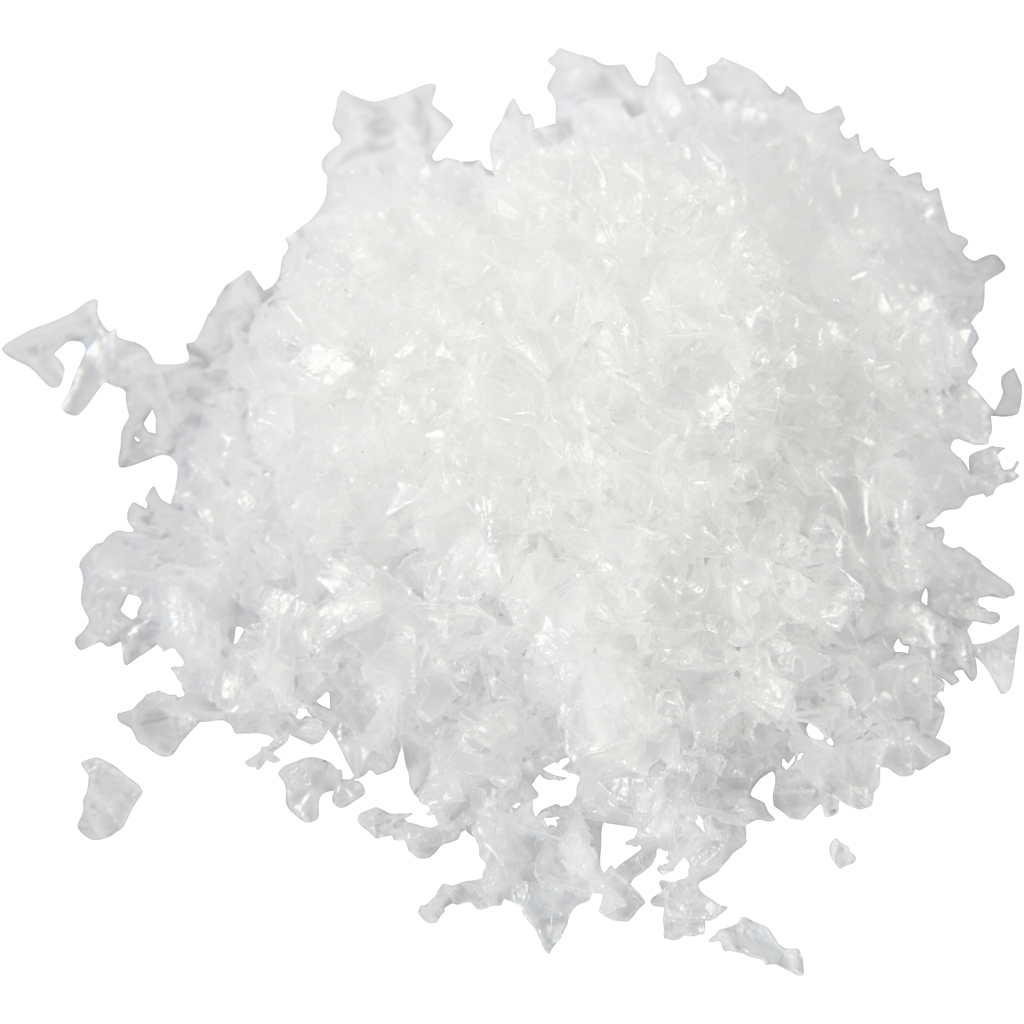 Decoration polystyrene snow of shimmering light flakes to sprinkle on surface. Looks like newly fallen snow. to decorate Christmas and pixie landscapes. Artificial Snow, transparent, 50 g/ 1 bag