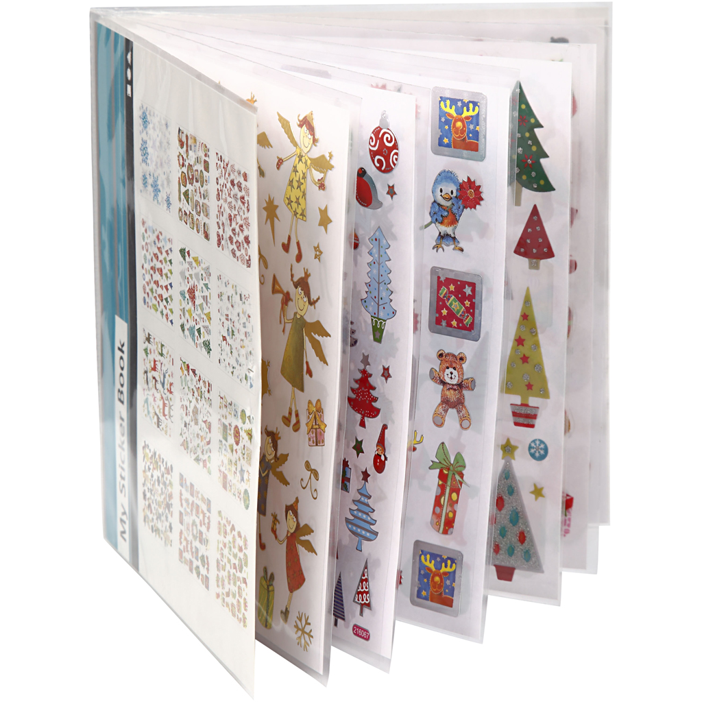 Booklet with 12 sheets of stickers, all with embossed details in either metal foil or glitter. Book of stickers, christmas, 15x16,5 cm, 12 sheet/ 1 pack