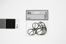 A round image printed on high quality, white cardboard, with a black motif. Includes foam pads for mounting to give a 3D effect. Cardboard Emblem, white/black, skateboard, dia. 25 mm, 20 pc/ 1 pack