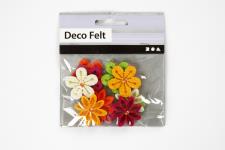 Laser cut felt flowers embellished with rhinestones and printed details - pack contains 2 shapes each of 6 colours. Felt Flowers, dia. 30 mm, thickness 2,5 mm, 12 pc/ 1 pack