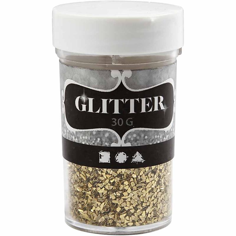Flat glitter flakes in a glitzy touch - comes in a handy container with screw lid. Glitter, gold, size 1-3 mm, 30 g/ 1 tub