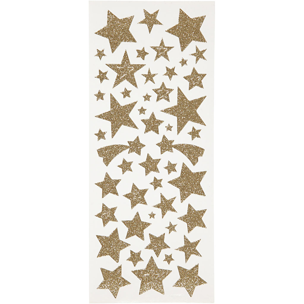 Self-adhesive glitter motifs made of special foil. Glitter Stickers, gold, stars, 10x24 cm, 2 sheet/ 1 pack