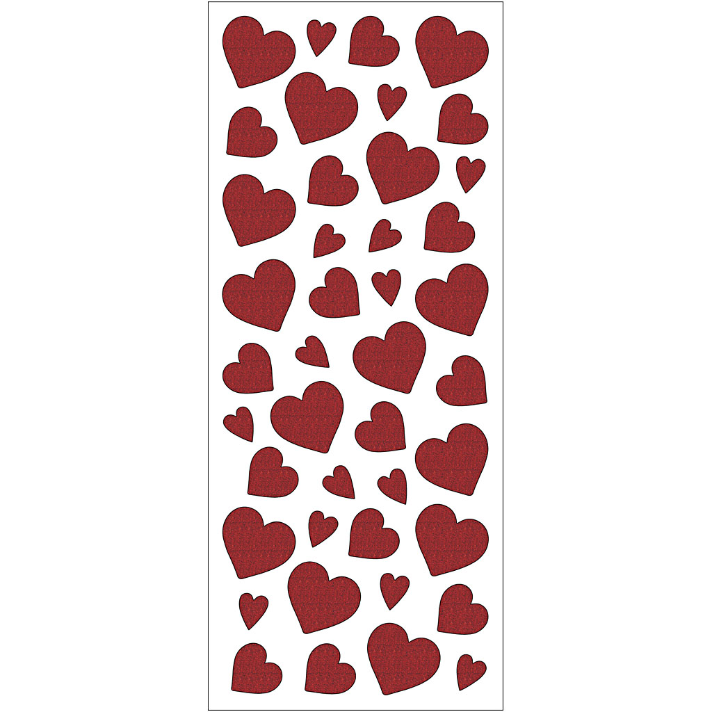 Self-adhesive glitter motifs made of special foil. Glitter Stickers, red, hearts, 10x24 cm, 2 sheet/ 1 pack
