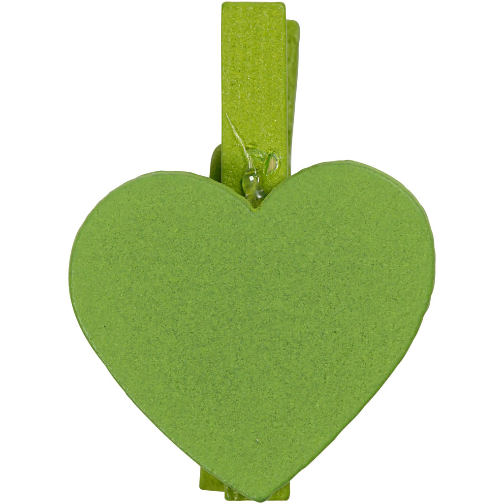 Small clothes peg with a mounted heart. Heart Peg, lime green, size 17x25 mm, thickness 11 mm, 10 pc/ 1 pack