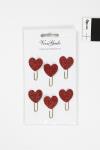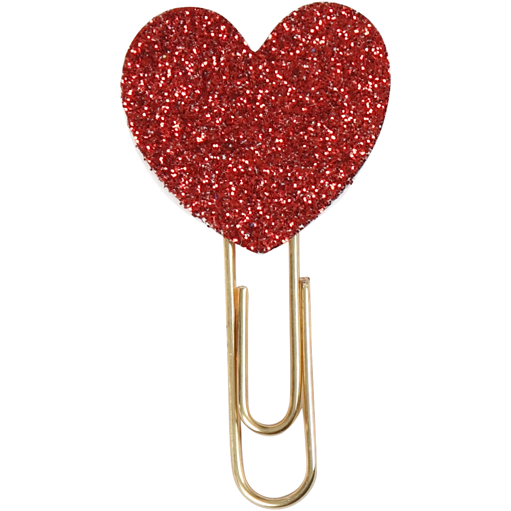 Sturdy shaped gold-plated metal paperclip with a motif made of glitter paper in a Vivi Gade design. Metal Paperclips, red glitter, hearts, dia. 30 mm, 6 pc/ 1 pack