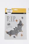 Self-adhesive stickers with motifs of punched, clear foil, with rhinestones and glitter respectively. Rhinestone Stickers, RIP and bat, 14x17 cm, 1 sheet
