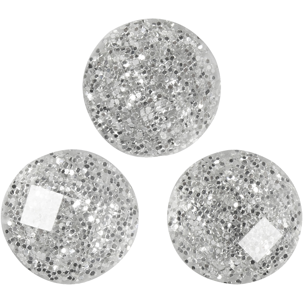 Self-adhesive, round rhinestones with glitter surface. Rhinestones, silver, dia. 8 mm, 32 pc/ 1 pack