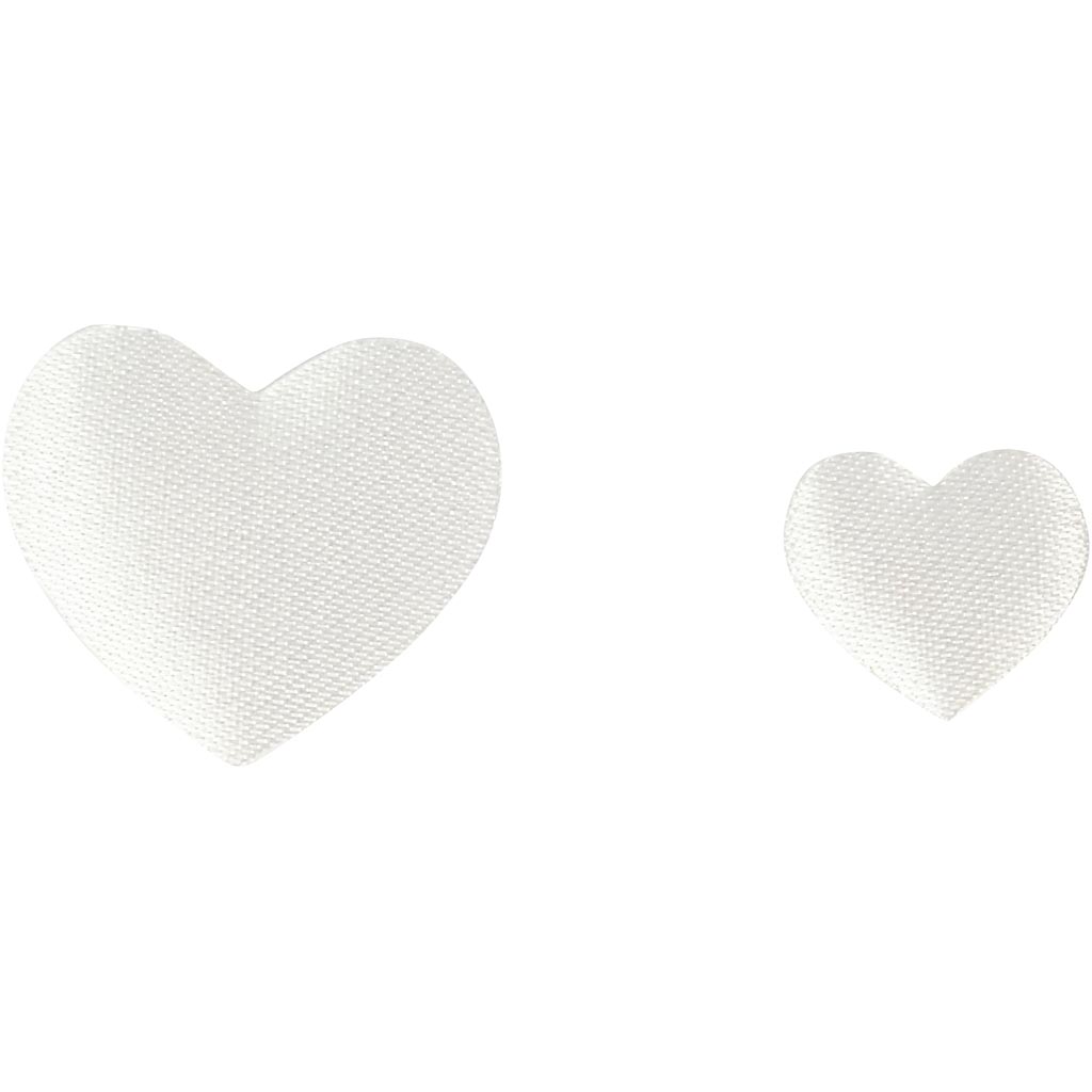 Padded, decorative satin hearts. Satin Hearts, white, size 10+20 mm, thickness 1-2 mm, 70 pc/ 1 pack