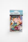 Assortment of sequins with a hole through the centre. Pack with 8 different designs in 7 colours. Sequins, pastel colours, size 6-20 mm, 10 g/ 1 pack