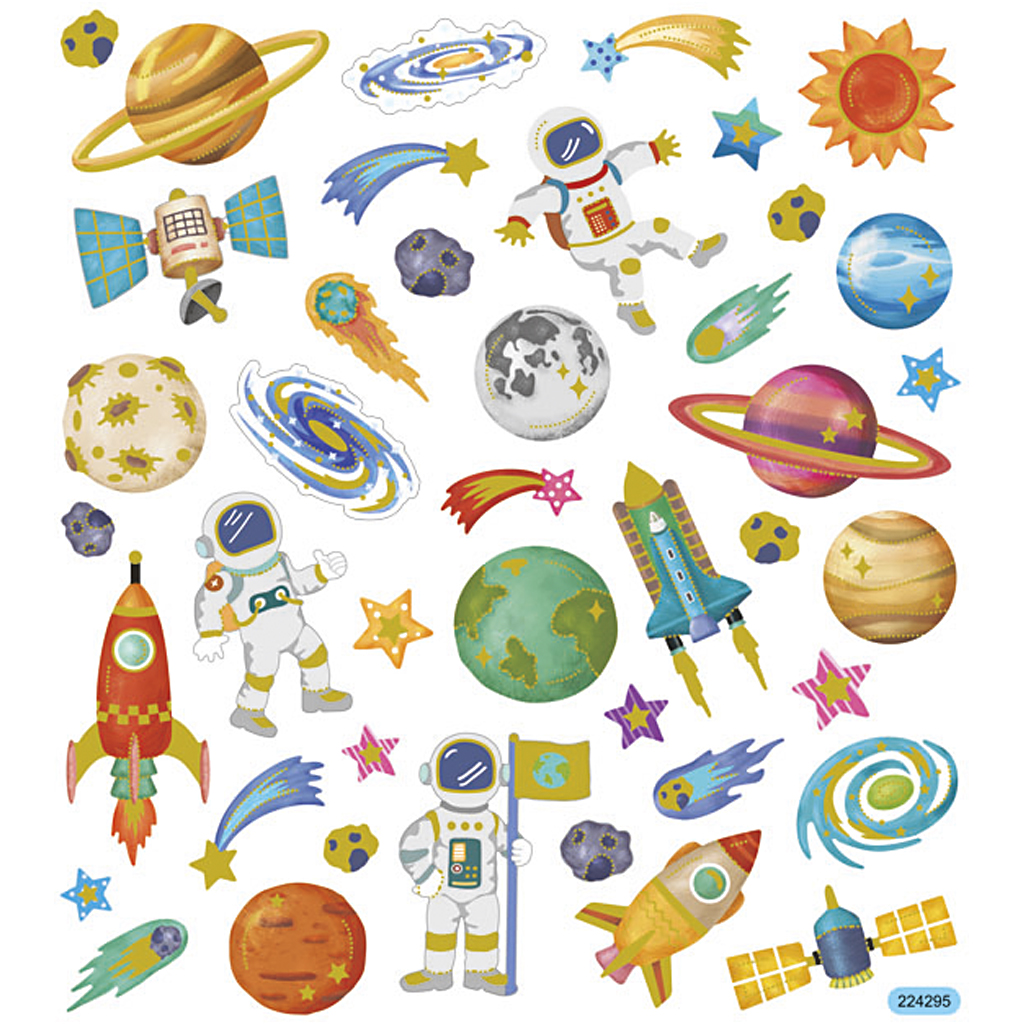 Self-adhesive plastic stickers with pretty details made from shiny foil that quickly liven up your things. Stickers, space, 15x16,5 cm, 1 sheet
