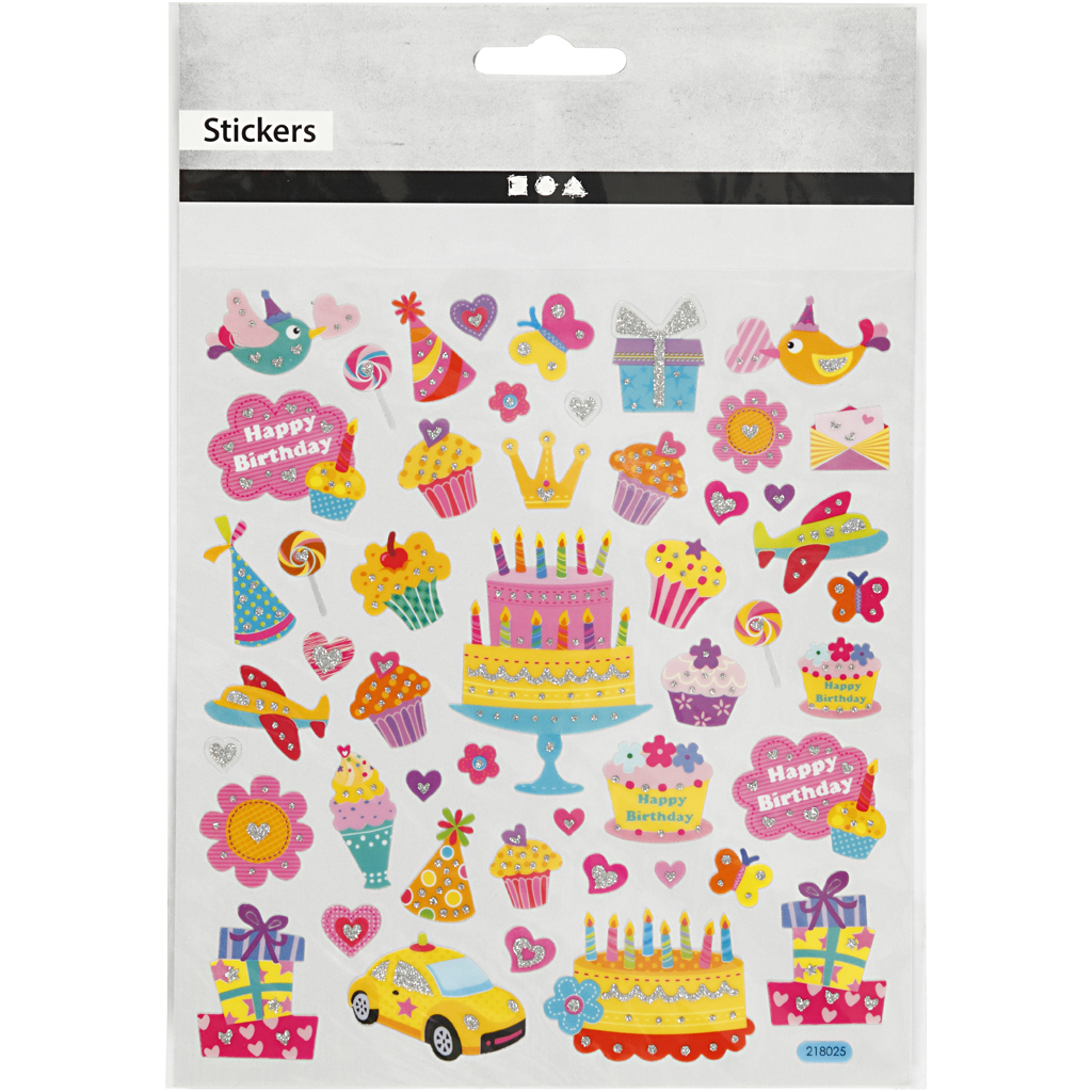 Self-adhesive plastic stickers with pretty glitter details that quickly liven up your belongings. Stickers, birthday, 15x16,5 cm, 1 sheet