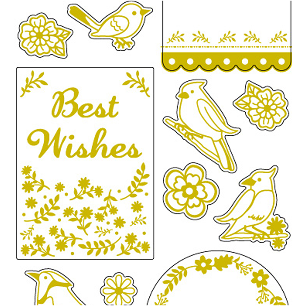 Self-adhesive stickers in silver foil on a thin, clear plastic film. Stickers, gold, birds, 10x24 cm, 1 sheet