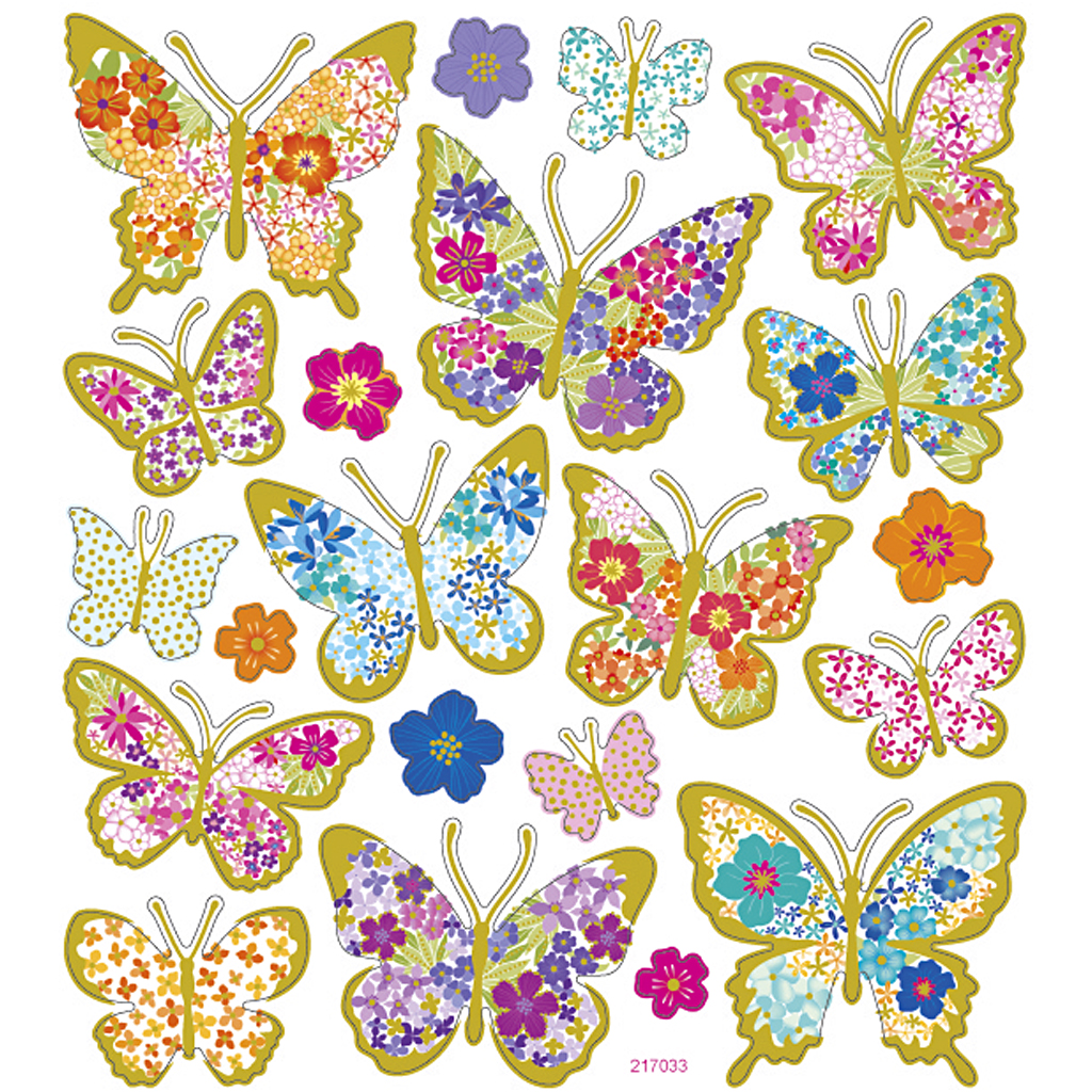 Brighten up your creative projects and anything else you feel like with these easy-to-use stickers. The stickers feature motifs on a thin, slightly transparent plastic film, with the finest details in silver foil and glitter lacquer. Stickers, butterflies, 15x16,5 cm, 1 sheet