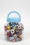 An assortment of small rolls of tape with deco foil in several different designs. 90 rolls of 2m each supplied in a plastic bucket. Tape, assorted colours, W: 12 mm, 90x2 m/ 1 tub