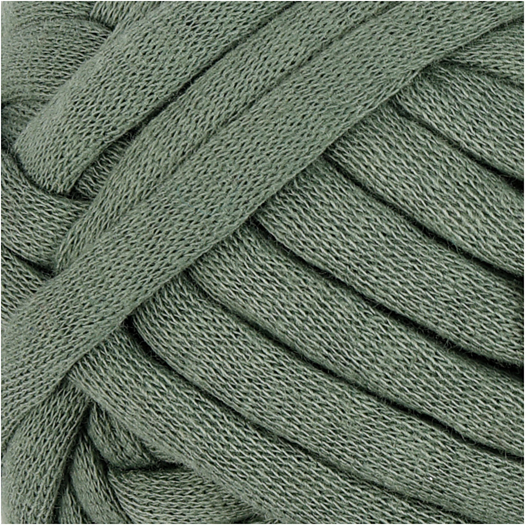 Fabric yarn in 100% cotton, knitted like a nylon fillet, making the yarn full. Especially suitable for heavy knitting or crocheting of pads, blankets, puffs, bags, etc. Cotton tube yarn, dark green, L: 45 m, 100 g/ 1 ball