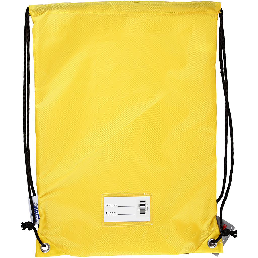 Bag with drawstring closure that can be used as shoulder straps. The bag is water resistant polyester with reinforced corners, 3M reflective tape and clear plastic pocket with inserts for name. Drawstring bag, yellow, size 31x44 cm, 1 pc