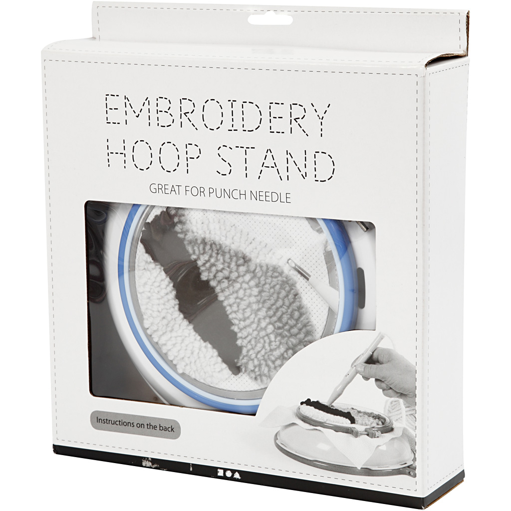 Practical and usable plastic embroidery bowl with metal buckle for attachment of embroidery fabric. Specially designed for embroidery with needle punch. Guidance included. Punch needle - Item no. 46141 is not included. Embroidery Hoop Stand, dia. 14,5 cm, 1 pc