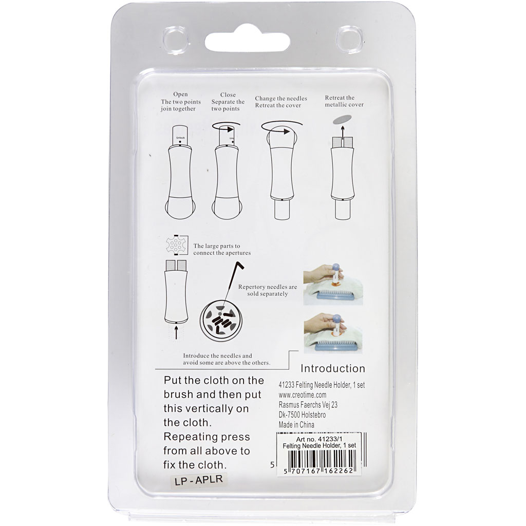 Practical felting needle holder of plastic - holds up for 7 needles (7 medium needles included). For refill use Item No. 41236. Only this felting needle is suitable for this holder. Felting Needle Holder, 1 set