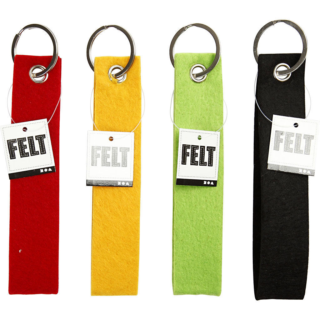 Key chain made?of thick 100% polyester felt with a large key ring (32 mm). Key Chain, black, green, red, yellow, size 3x15 cm, 4 pc/ 1 pack