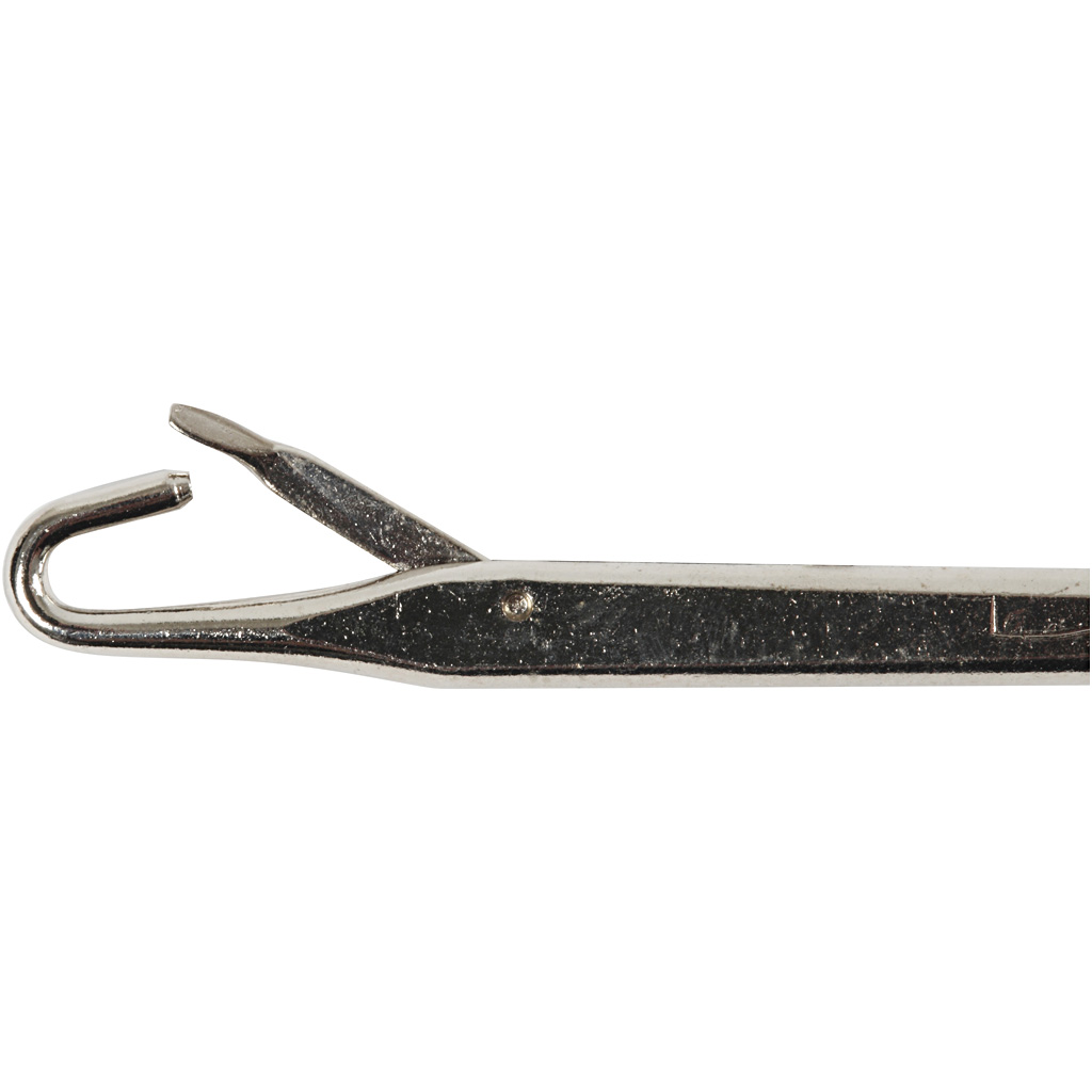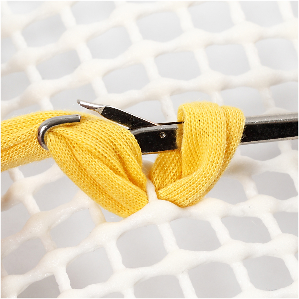 Latch needle made of spray-coated metal with rubber-coated handle in an ergonomic design Used for the manufacture of rya carpets (woven fabric with loops of yarn cut and forming long pile). Used for the production of rye (long-haired carpet). Cut pie. Latch Hook with Handle, L: 15,5 cm, 1 pc