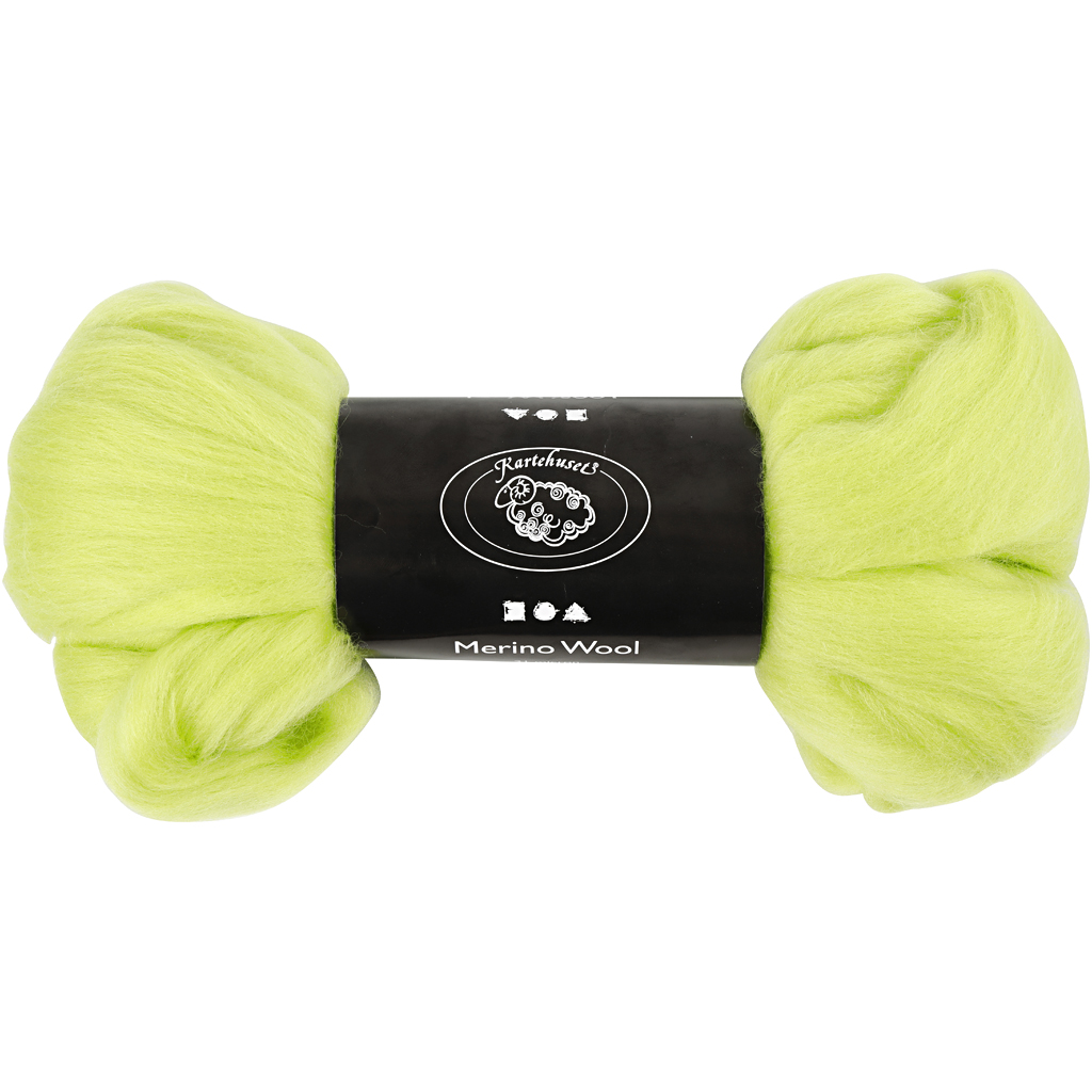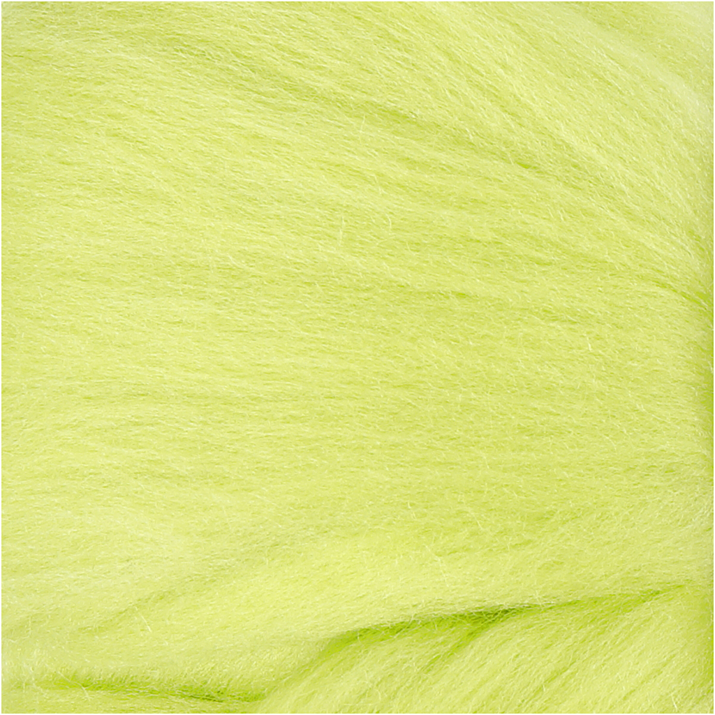 100% wool from South American merino sheep in a fine, soft high quality - combed into tops - suitable for felting and spinning. Content may vary. Merino Wool, lime green, thickness 21 my, 100 g/ 1 pack
