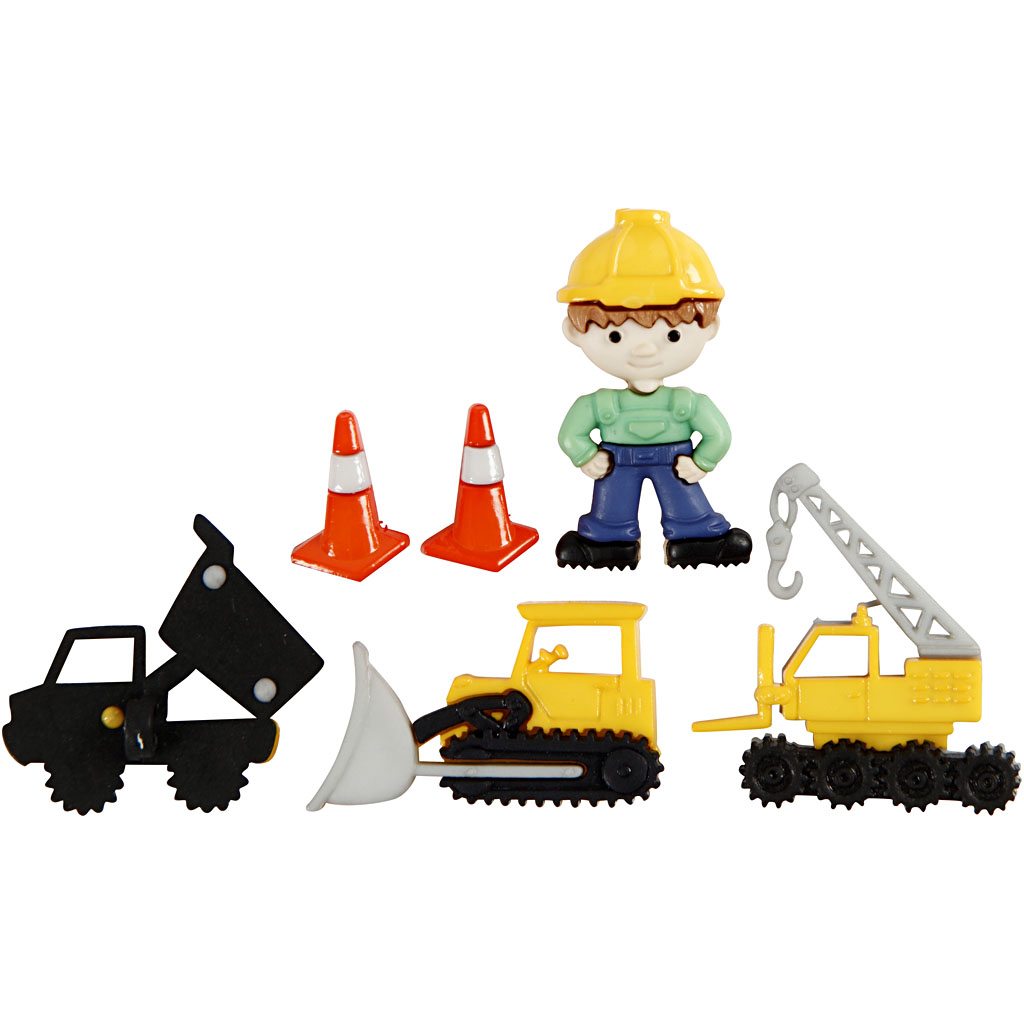 Novelty-shaped plastic buttons. 6 x builder-themed novelty-shaped plastic buttons. Novelty Buttons, work zone, H: 14-29 mm, W: 10-30 mm, 6 pc/ 1 pack