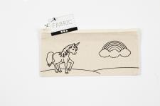 Pencil case in 100% cotton with pre-printed motifs for you to colour in. Pencil case, light natural, unicorn, size 21x9 cm, 245 g, 1 pc