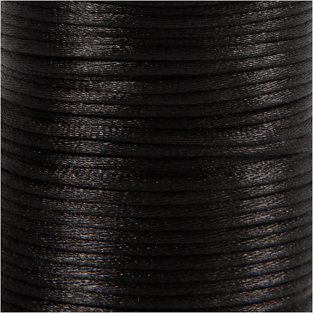Beautiful luxurious high quality round satin cord on a roll. Satin Cord, black, thickness 2 mm, 50 m/ 1 roll