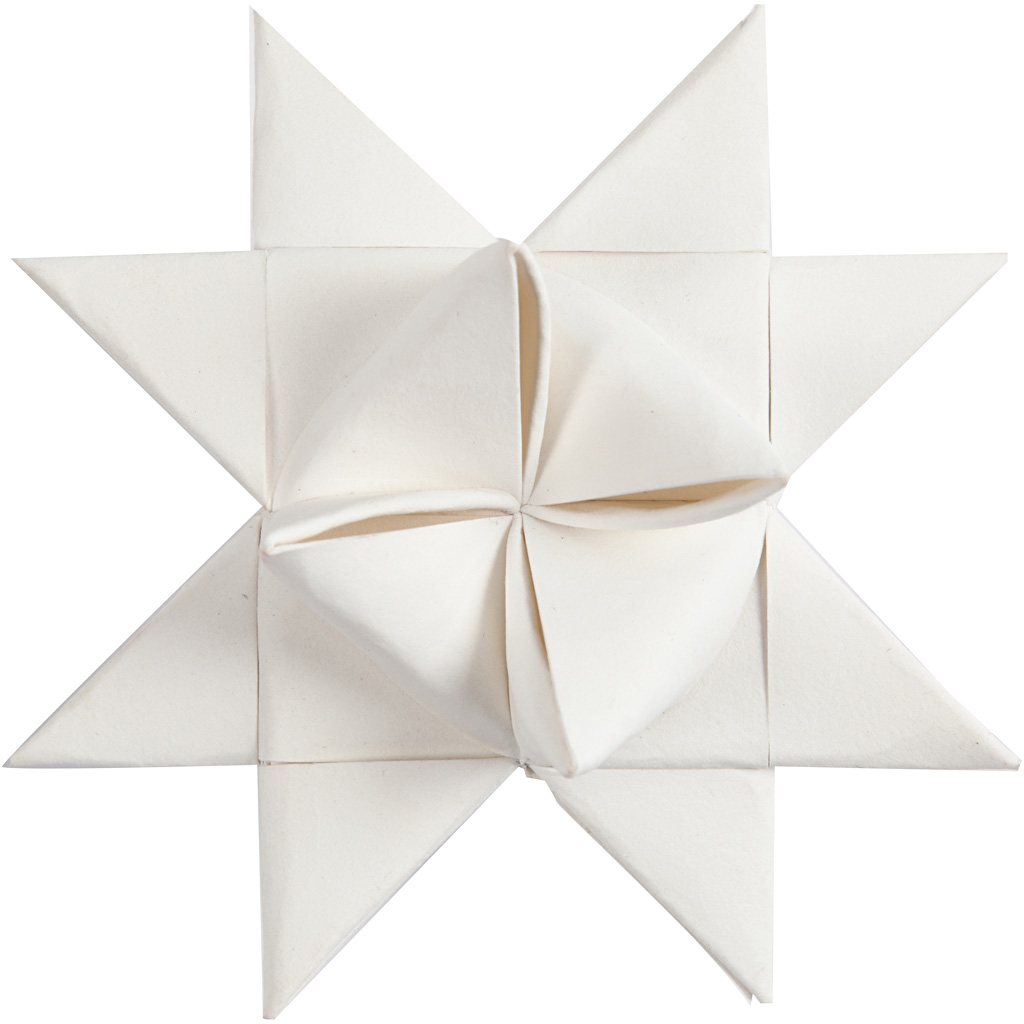 Traditional star strips made of faux leather paper - look like leather and are suitable for sewing or decorating with imprint. Can be washed, making the expression extra rustic. Diam. indicates the finishing star's measure. Guidance is included. Pack. Star strips, white, L: 44+78 cm, W: 15+25 mm, 350 g, 24 strips/ 1 pack