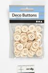 Wood buttons of unlacquered wood. Wooden Buttons, dia. 15 mm, 4 holes, 50 pc/ 1 pack