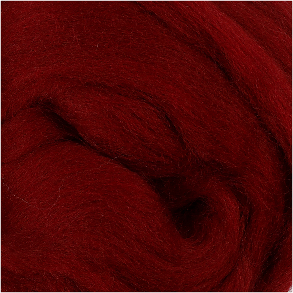 100% wool from South American merino sheep in a fine, soft high quality - combed into tops - suitable for felting and spinning. Content may vary. Wool, dark red, thickness 21 my, 100 g/ 1 pack