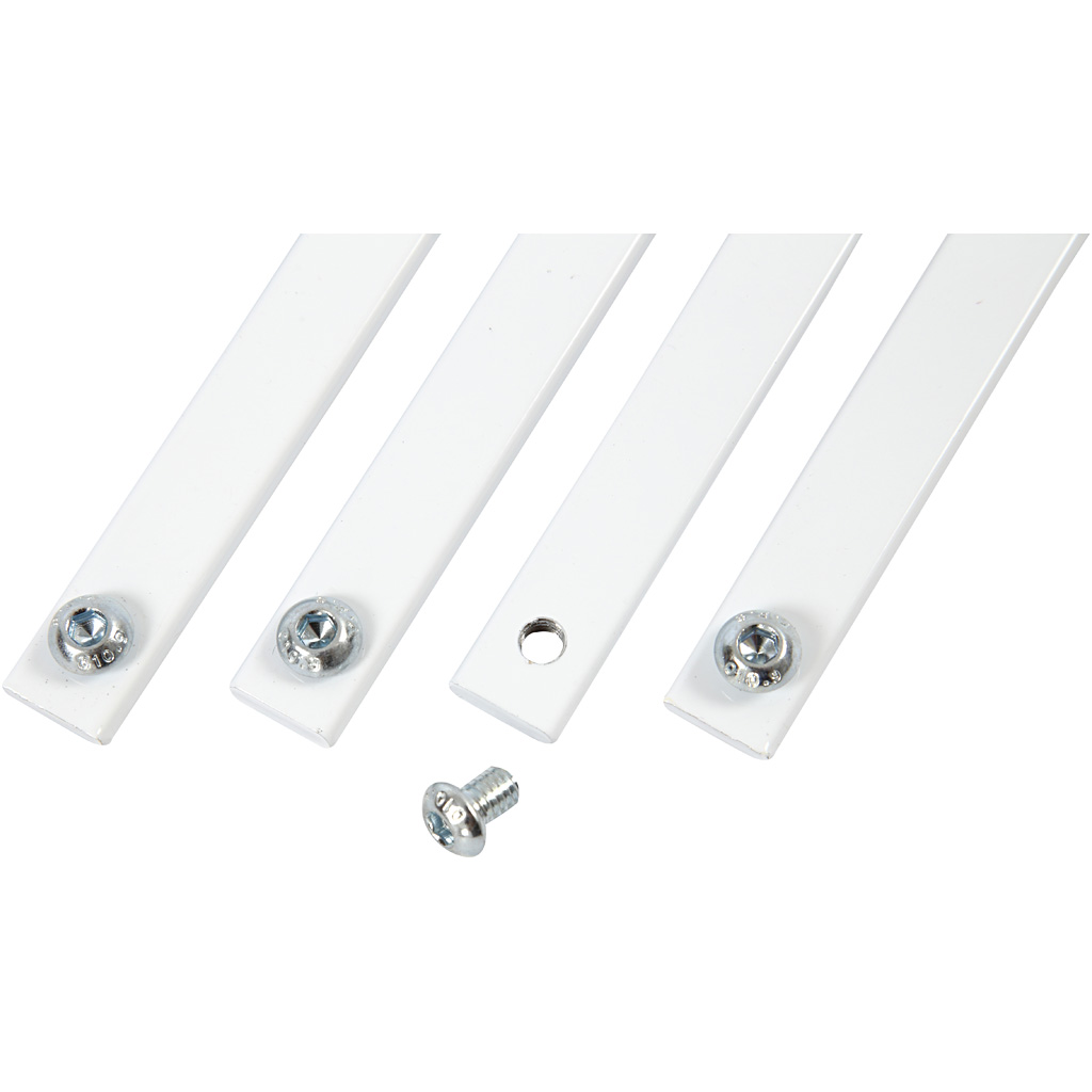 Assembly kit for the paper storage unit. Set of 4 including screws. Used to assemble the card racks with 24 shelves (2 x 12 shelves). Assembly Kit for Paper StorageUnit, L: 100 mm, W: 30 mm, 1 set