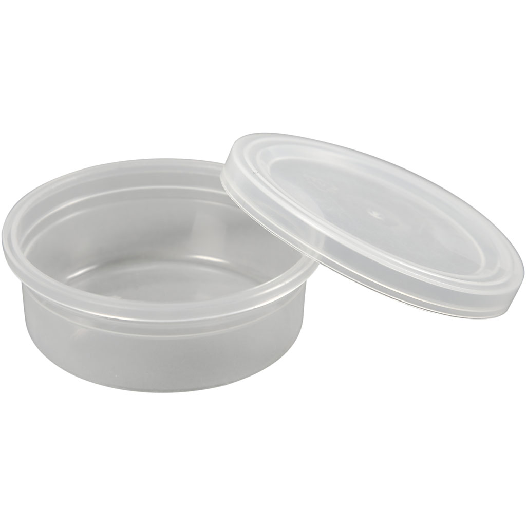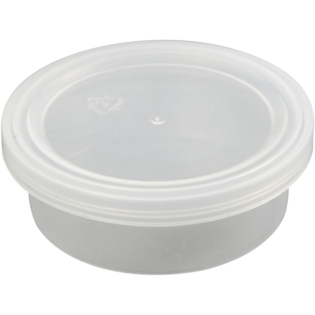 Clear plastic tub with soft snap-on plastic lid. Plastic Tub with Lid, H: 24 mm, dia. 68 mm, 45 ml, 20 pc/ 1 pack