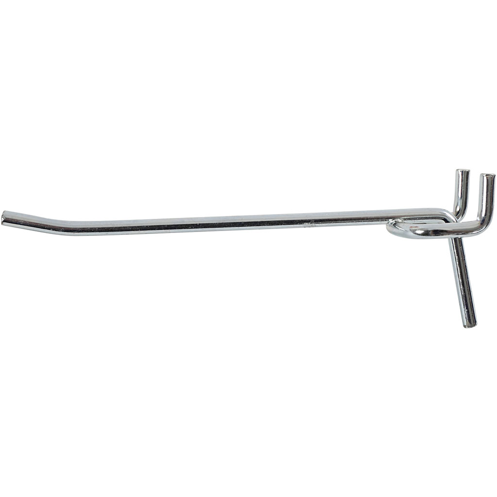 Single prong pegboard hook, chrome mounting of perforated plate. Single prong pegboard hook, L: 100 mm, W: 25 mm, thickness 3 mm, 20 pc/ 1 pack