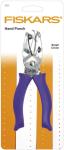 Fiskars hand punch in stainless steel with softgrip handle. Punches paper and card up to 180 g. Hand Punch, Small Circle, hole size 1,5 mm, 1 pc