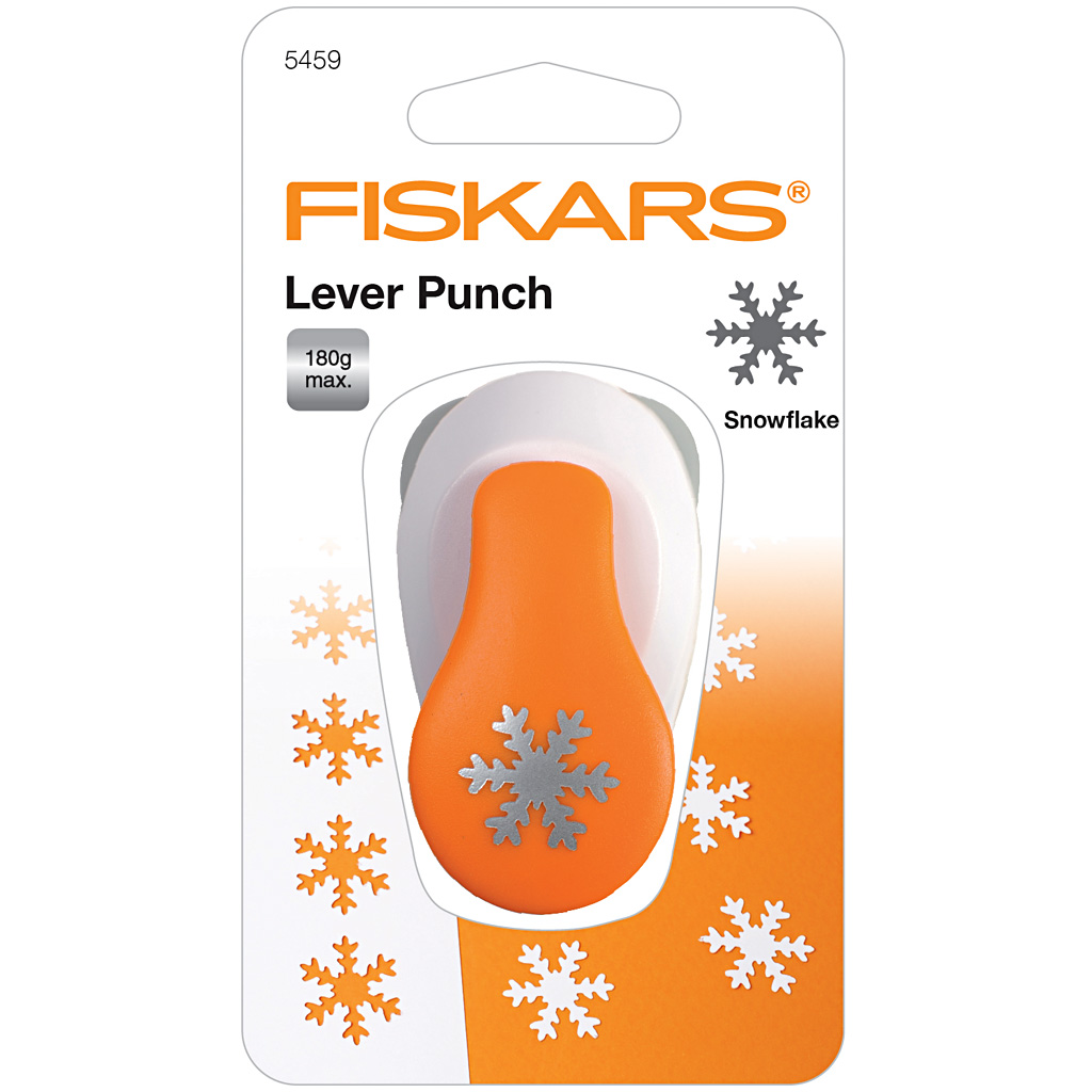 Lever punch with built-in confetti catcher will store all punchouts until ready for use. Max 180g carton. Lever Punch, snowflake, D 19 mm, size S , 1 pc