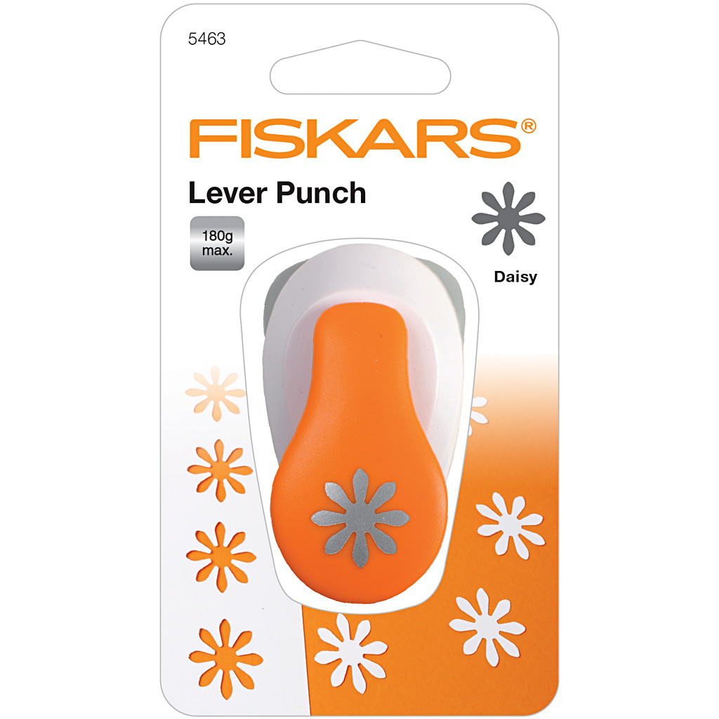 Lever punch with built-in confetti catcher will store all punchouts until ready for use. Max 180g carton. Lever Punch, daisy, D 19 mm, size S , 1 pc