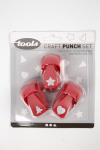 Set of 3 different paper punches for paper and thin card. Paper Punches, red, star, heart, christmas tree, size 16 mm, 1 set