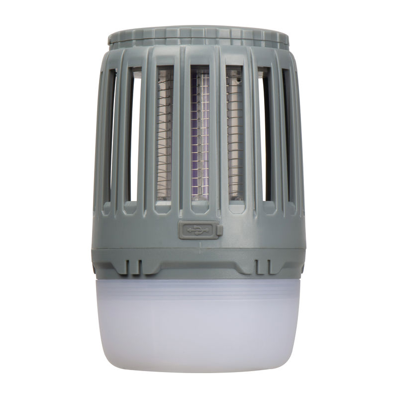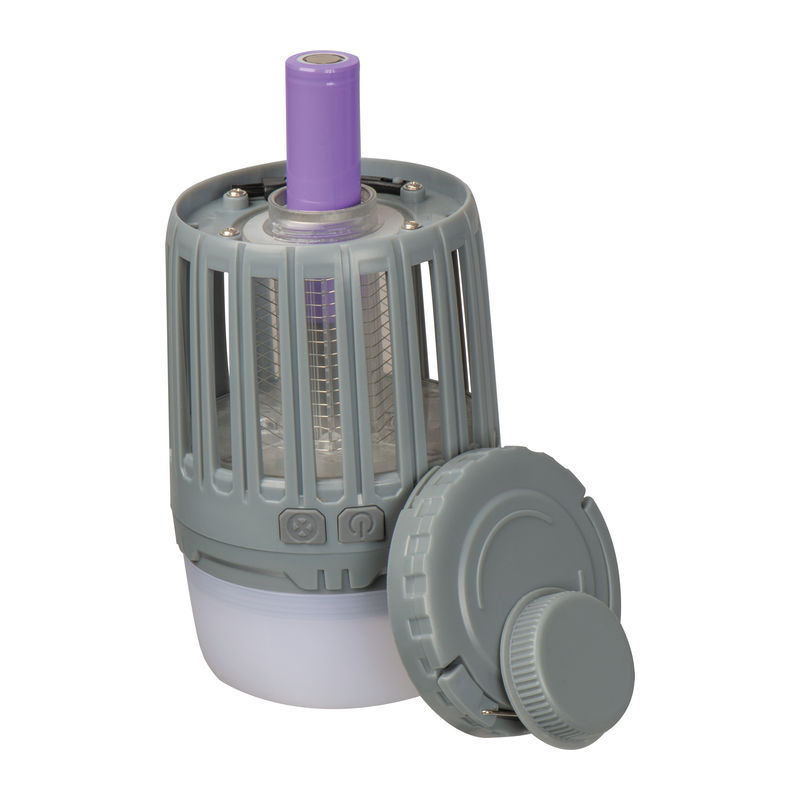 Mosquito eradication lamp featuring a hanging device and a concealed cleaning tool beneath the rotating lid. Equipped with Type-C charging, a 2,000 mAh battery, charging cable, and COB technology. Provides effective mosquito protection with modern, convenient charging functionality.