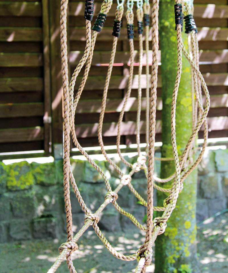 Enthusiastic climbing on the bridge from tear-resistant plastic parts teaches balance and body feeling playfully! A "must" for the jungle gym in the garden or stretched between two trees it will be surely a hit! 14 metal eyelets are used to fasten and are found on the lower cross-connections in the feet.