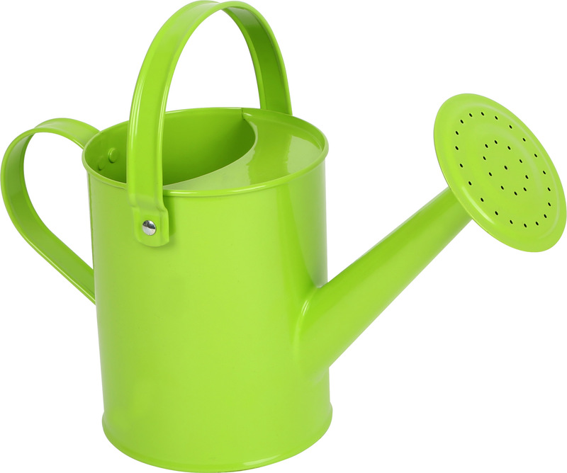Let the flowers bloom! With this green watering can, no flowers will be hanging their heads low. The child-friendly handling with the movable carrying handle and the robust manufacturing out of metal, this stylish watering can will be a real eye-catcher in the gardening shed. This watering can promises longevity with its outstanding manufacturing quality. Which flower hasn't been watered yet?