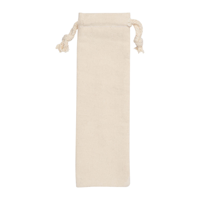 Bamboo cutlery, consisting of a fork, a knife and a spoon in a cotton bag. Suitable for camping or other outdoor activities. The logo is printed on the pocket.