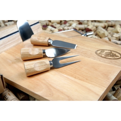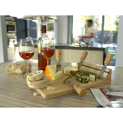 Wooden cheese board with magnetic tape stripe and 4 cheese accessories