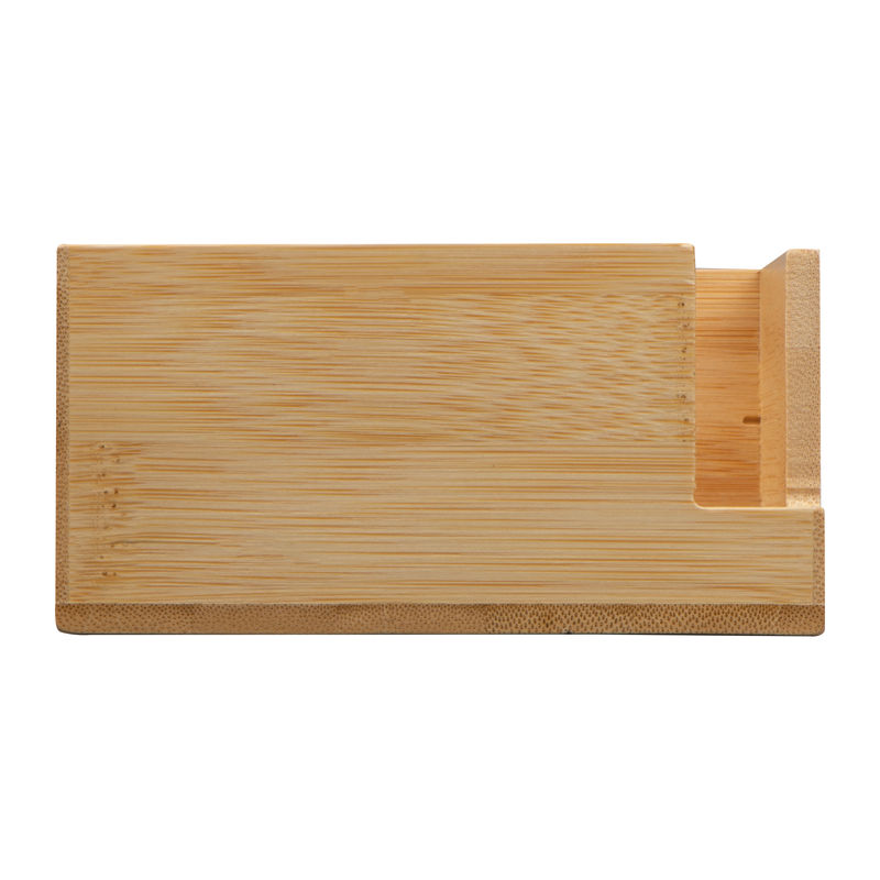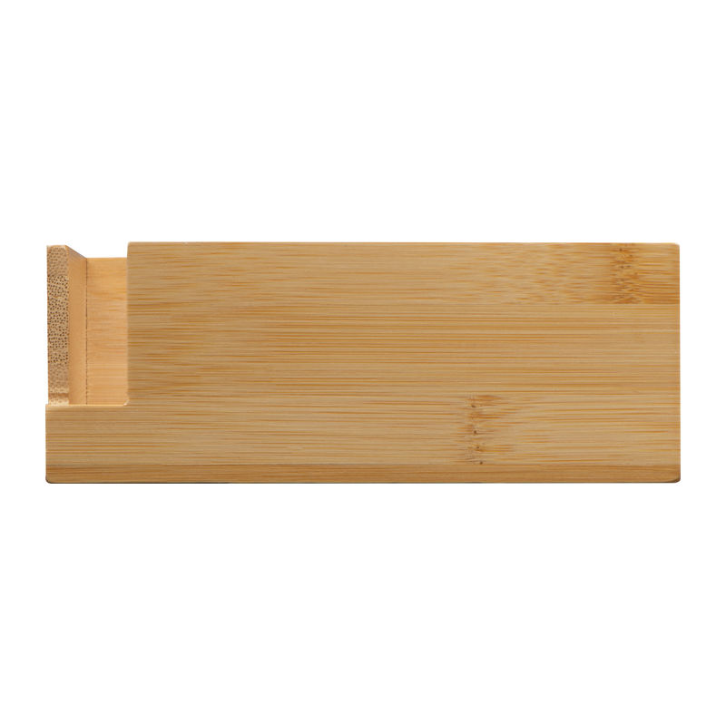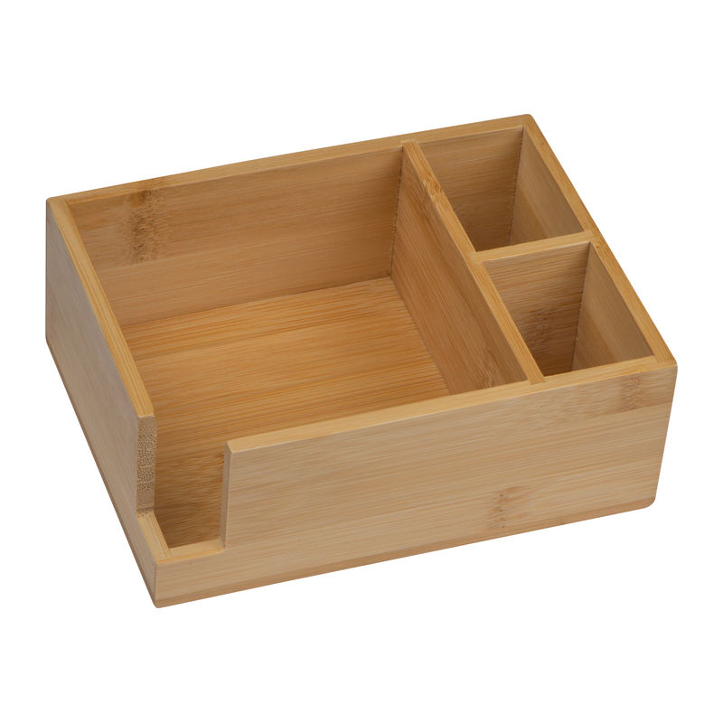 Small cutlery box made of bamboo with napkin compartment (10 x 10cm) and other compartments for cutlery or sticks for sugar or salt. We engrave your logo on one side.