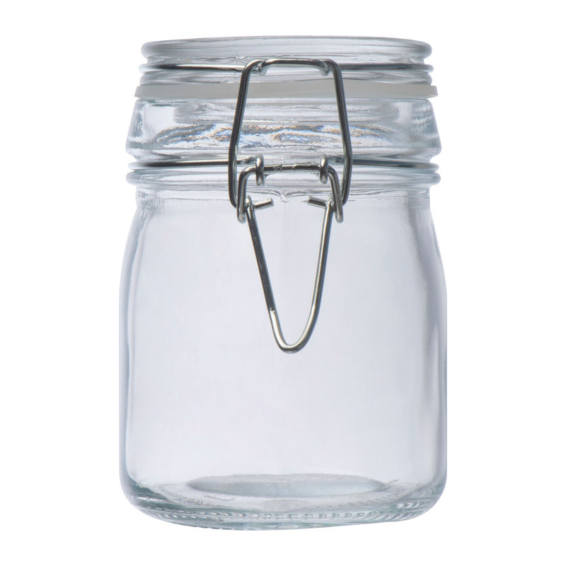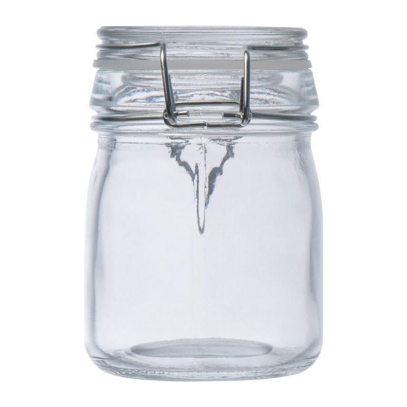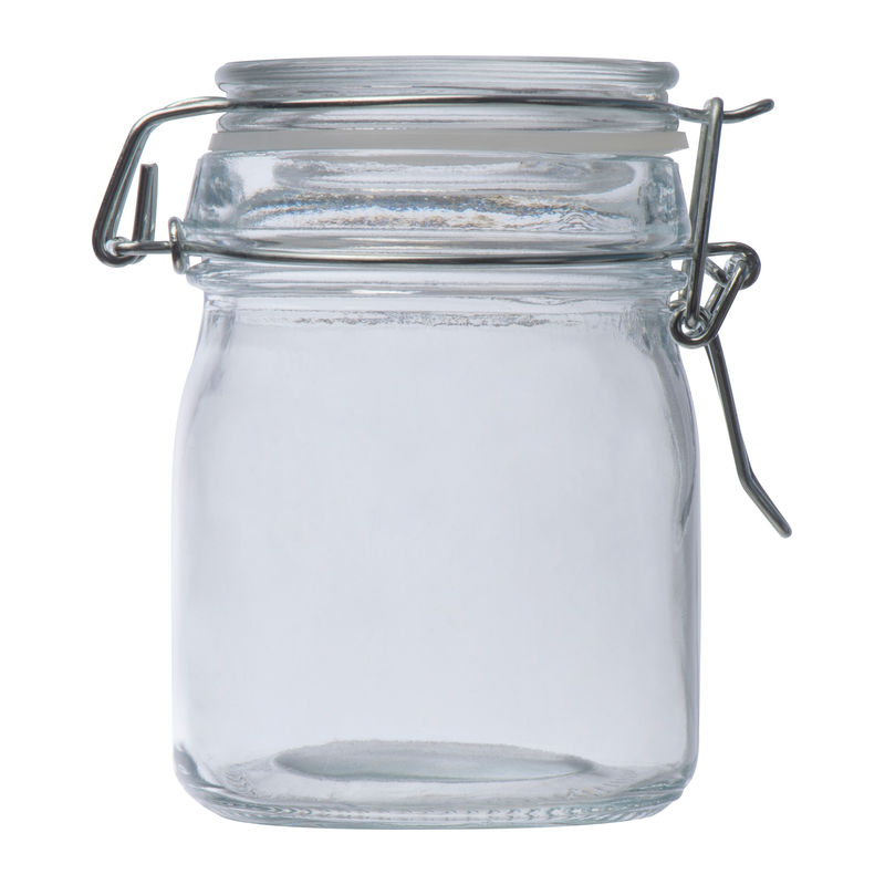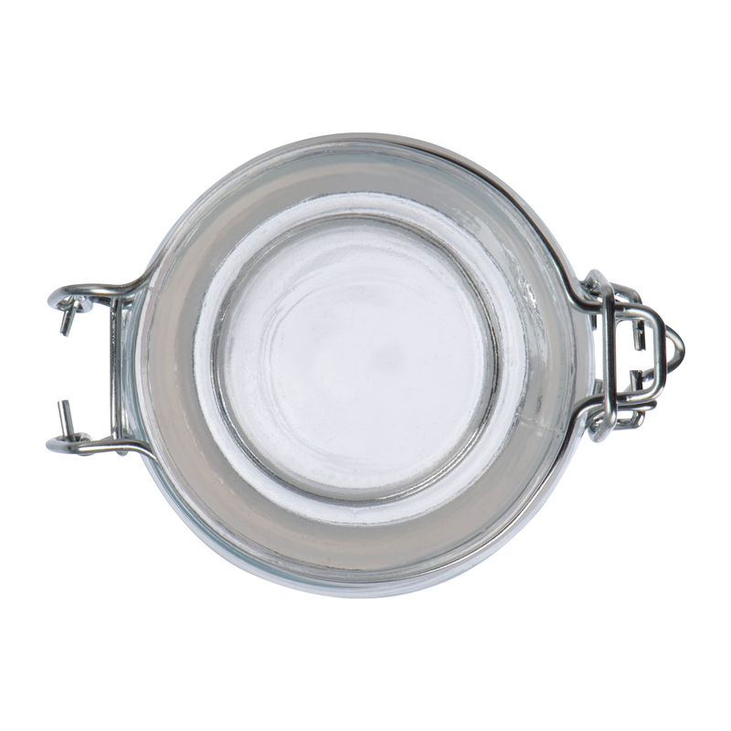 Storage jar made of borosilicate glass (150ml) with swing top. Perfect for storage.We will print your logo on the glass.